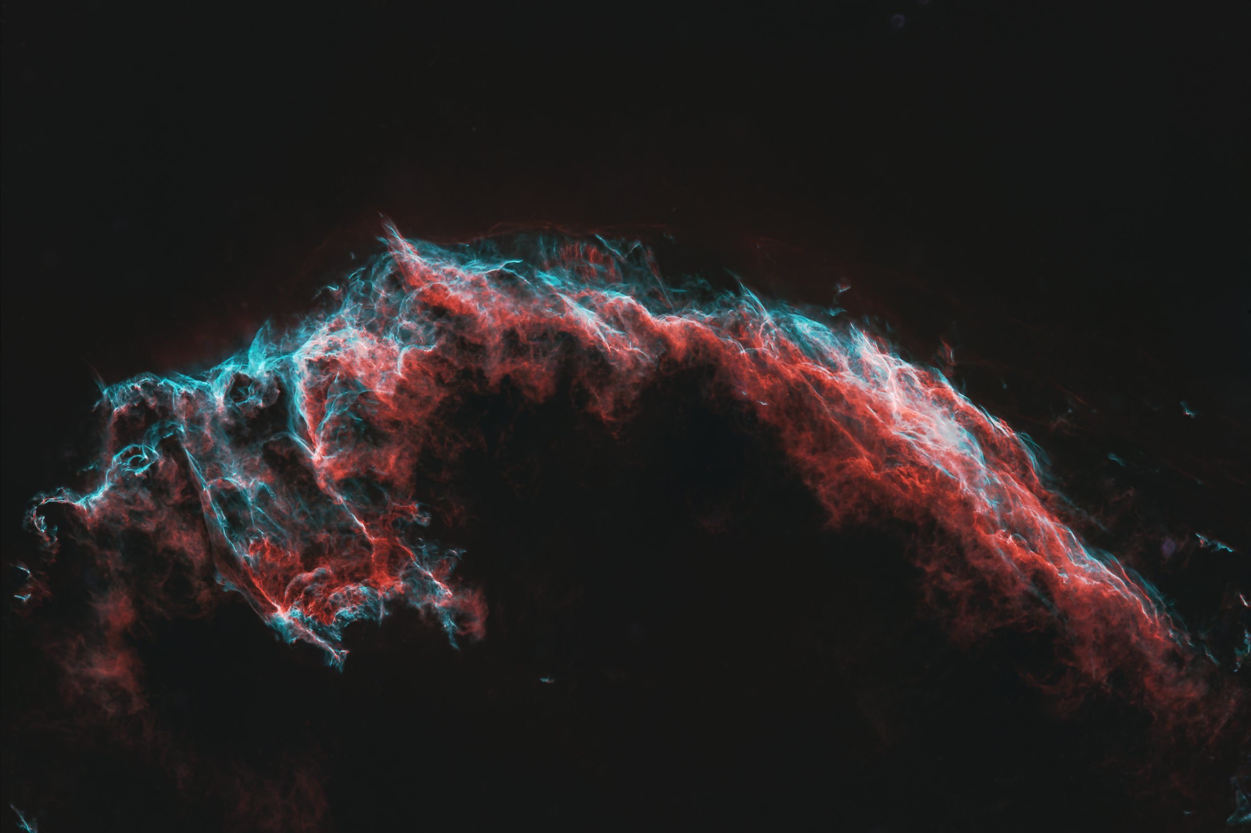 O que hoje contemplamos são filigranas luminosas de gás ionizado, moldadas pela onda de choque de uma antiga explosão estelar. A NGC 6992, uma das regiões mais brilhantes, estende-se por cerca de 50 anos-luz, uma dimensão equivalente a mais de 37 mil milhões de vezes o diâmetro da Terra. Já todo o complexo, com aproximadamente 110 anos-luz de extensão, é tão vasto que poderia conter cerca de 88 mil vezes a largura do nosso Sistema Solar até Plutão.